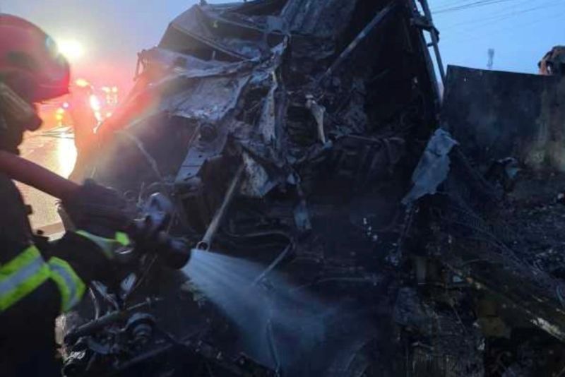 La sosirea echipajelor de intervenție, unul dintre autotrenuri ardea generalizat, iar în urma accidentului au rezultat două victime - șoferii celor două autovehicule - care, din nefericire, prezentau leziuni incompatibile cu viața, decesul fiind declarat de către echipajul medical.