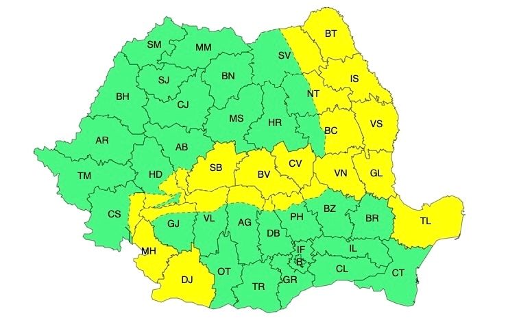 ATENȚIONARE METEOROLOGICĂ - COD GALBEN