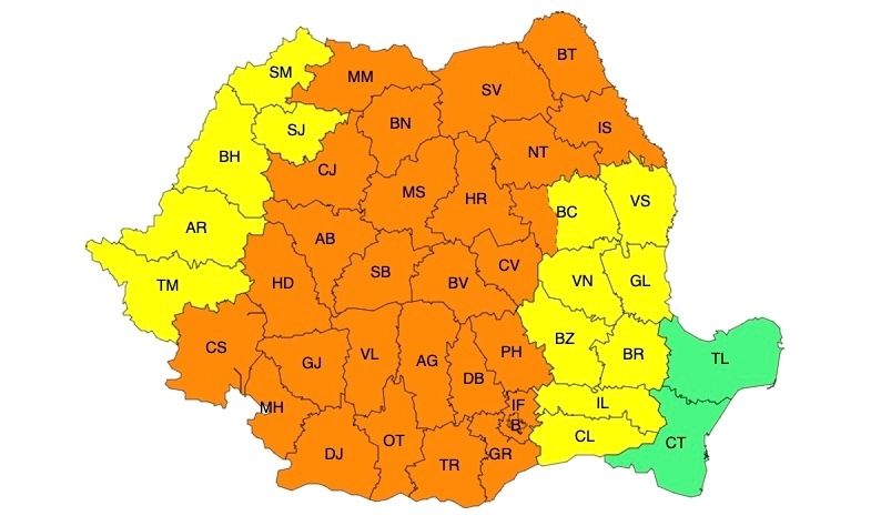 Noi avertizări cod galben și cod portocaliu