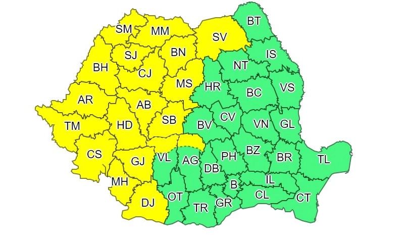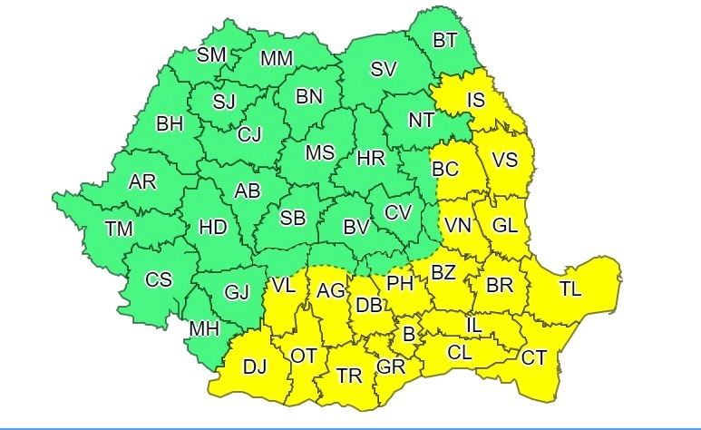 ATENȚIONARE METEOROLOGICĂ COD GALBEN