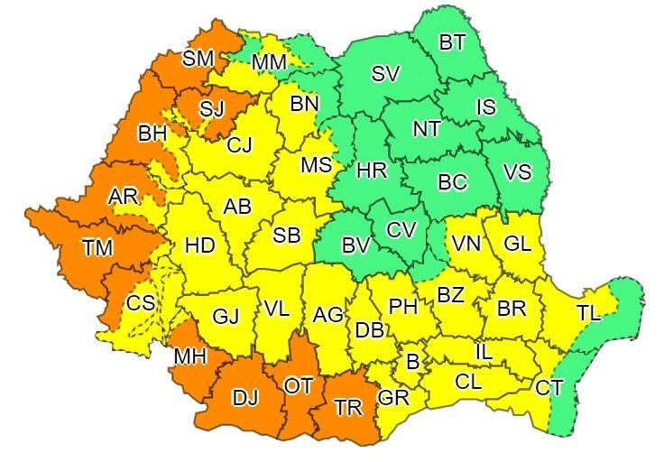 COD PORTOCALIUFenomene vizate: val de căldură în intensificare și disconfort termic accentuatInterval de valabilitate: 24 iulie