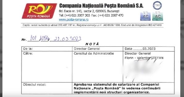 SALARIILE URIAȘE PROPUSE DE DIRECTORUL POȘTEI ROMÂNE PENTRU CEI DIN CONDUCERE
