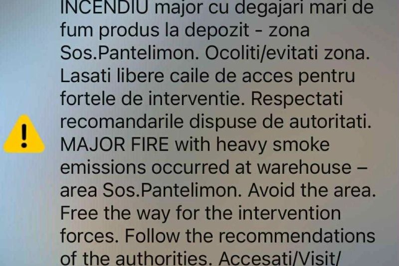 Ca urmare a degajării intense de fum, a fost emis un nou mesaj RoAlert, pe o raza de 2 km. Sub influenta rafalelor de vânt, exista riscul ca fumul sa pătrundă in locuințele din apropiere, sens in care le solicitam locatarilor închiderea ușilor si ferestrelor, iar participanților la trafic sa faciliteze deplasarea autospecialelor de pompieri.