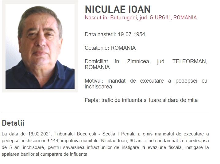 Omul de afaceri Ioan Niculae a fost dat în urmărire națională joi seară, după ce nu a fost găsit la locuința sa din Zimnicea.