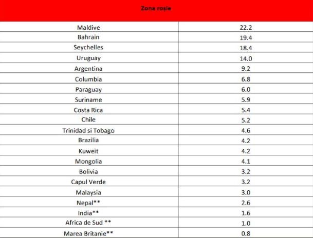 Lista țărilor cu risc epidemiologic, ACTUALIZATĂ. Marea Britanie rămâne în zona roșie. Franța inclusă în zona galbenă