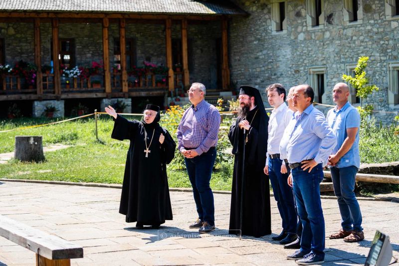 Oaspeții, însoțiți de domnul Gheorghe Flutur, Președintele Consiliului Județean Suceava, au fost întâmpinați de obștea Mănăstirii Voroneț, condusă de maica stareță, stavrofora Gabriela Platon. Atât maica stareță, cât și stavrofora Elena Simionovici, preşedintă de onoare a Societăţii Scriitorilor Bucovineni și membră a Uniunii Scriitorilor din România, le-a vorbit celor prezenți despre istoria înfloritoare, dar și zbuciumată, a ctitoriei voievodale.
