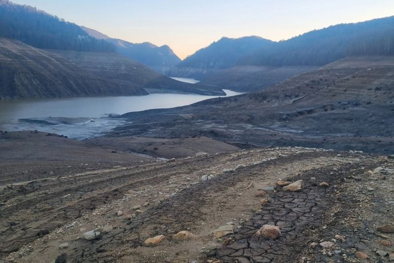 Noi imagini cu lacul Vidraru aproape gol. Nivelul apei a scăzut cu 100 de metri, peisajul este SPECTACULOS