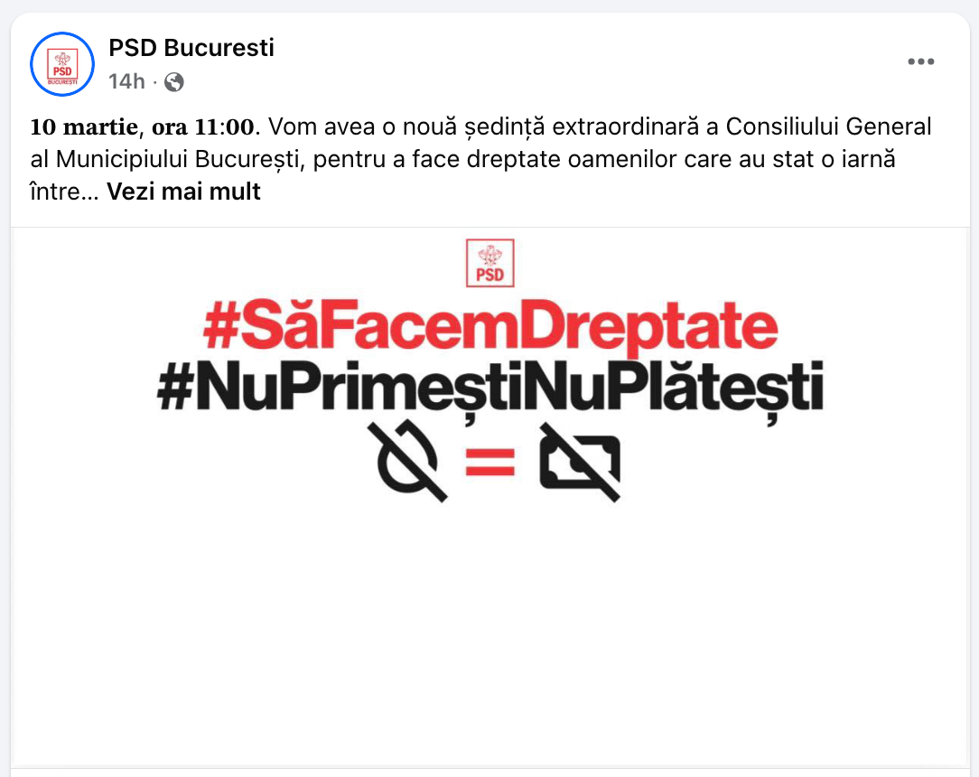 „Nu primești, nu plătești!” – PSD București convoacă ședință extraordinară pe 10 martie pentru bucureștenii lăsați în frig