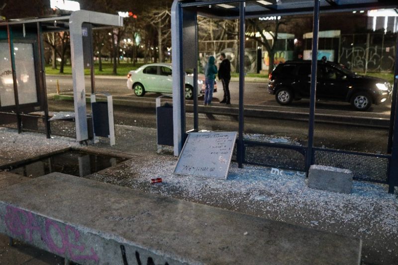 Tot atunci, mai multe stații de autobuz au fost vandalizate de câțiva tineri din grupul de manifestanți.