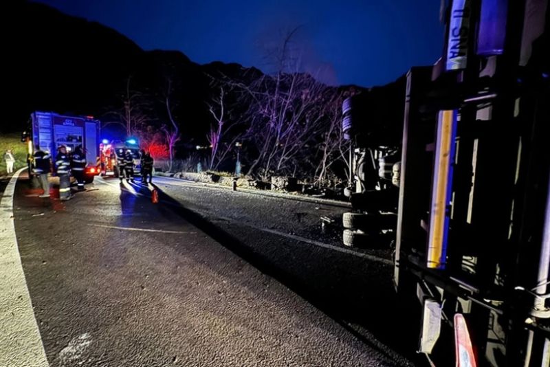 TRAFIC BLOCAT PE VALEA OLTULUI. DOUĂ CAMIOANE S-AU CIOCNIT VIOLENT