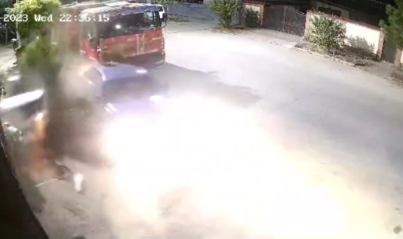 Într-o mișcare salvatoare de ultim moment, primarul și interlocutorul său s-au dat la o parte din calea șoferului furios, care a intrat în coliziune cu un autoturism și cu un autocamion, parcate pe drumul public. Scenele sunt demne de un film de actiune: autoturismul a fost lovit cu putere și proiectat în camion.