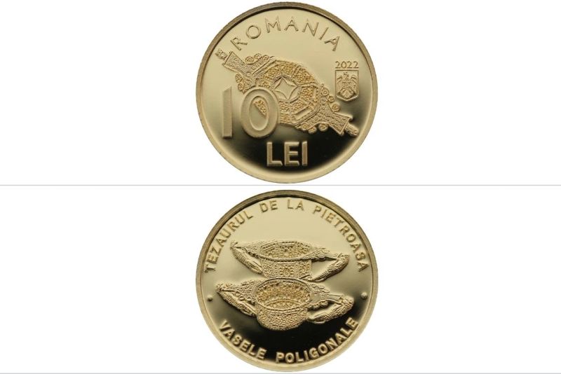 Banca Naţională a României va lansa, începând de luni, în circuitul numismatic o monedă din aur cu tema Tezaurul de la Pietroasa - Vasele Poligonale, potrivit unui comunicat al băncii centrale.