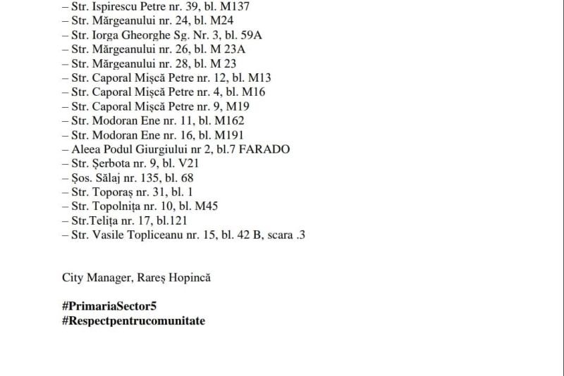 “Tot în 2023, Primăria Sectorului 5 va realiza studiile de fezabilitate pentru alte 217 blocuri și va lansa procedura de licitație pentru execuția lucrărilor”, a menționat city managerul Sectorului 5, Rareș Hopincă.