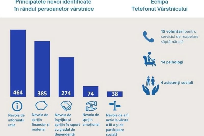 Telefonul Varstnicului este singura linie telefonica gratuita si confidentiala dedicata persoanelor varstnice, accesibila la nivel national. Apelurile se pot face la 0800 460 001, iar de luni pana vineri, intre orele 08.00 – 20.00 si sambata intre 08:00 – 16:00, o echipa de specialisti raspunde cu suflet celor in nevoie si le ofera solutii la problemele cu care se confrunta.
