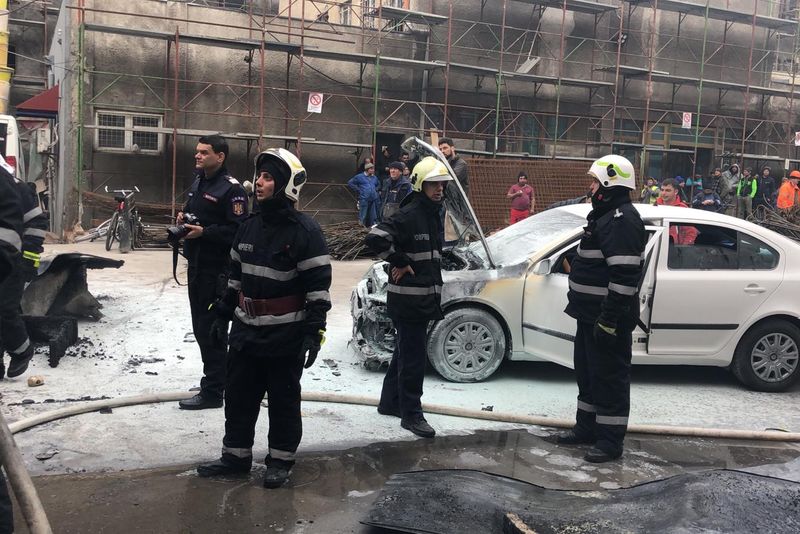 Incendiul de la organizarea de șantier s-a extiins și la un autoturism parcat în apropiere.
