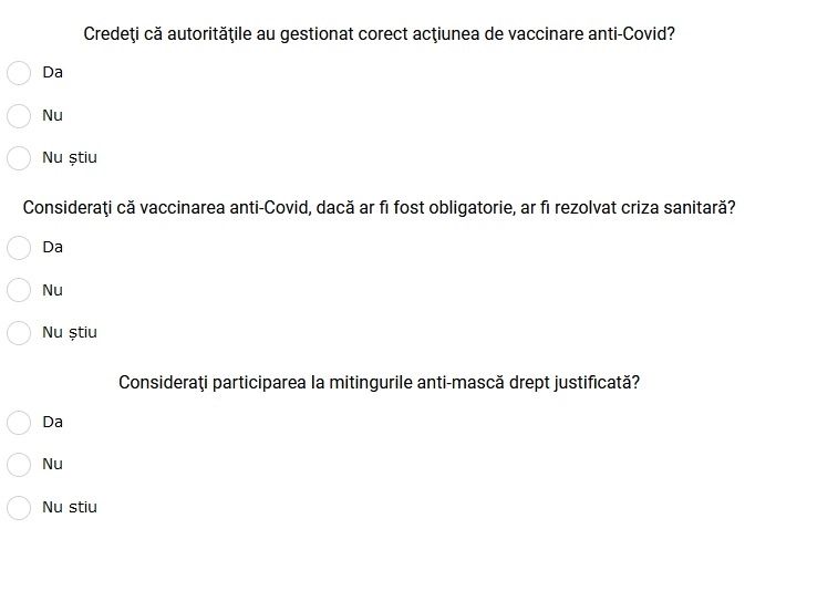 Totodată, Institutul urmărește să identifice care este percepția populației despre protestele anti-mască și felul în care pandemia a influențat traiul de zi cu zi al românilor.